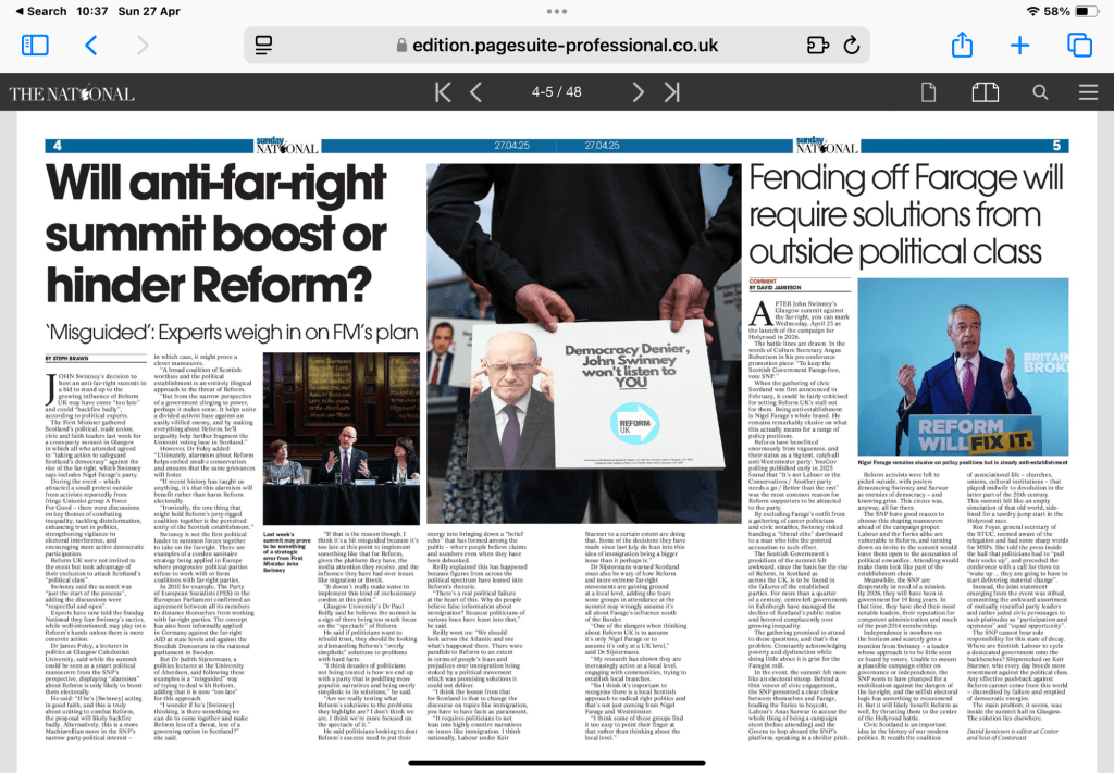 I was quoted in an article by The National’s Steph Brawn on the anti-far right summit in Scotland.