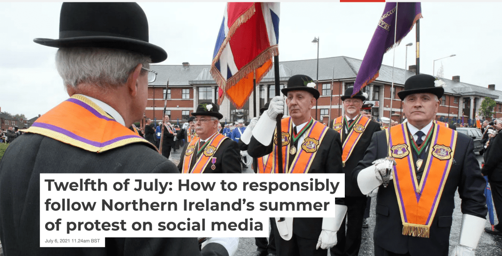 The Conversation UK have published an essay of mine on how to follow Northern Irish protests on social media. Drawing on my research on the union flag protests, Ardoyne parade dispute and my recently published book, I argue that we should all be careful about what we share on sites like Facebook and Twitter during the marching season. Key tips such as ‘Check before you share’, ‘know who to follow’ and ‘play the ball, not the person’ are shared in the piece. I also recommend following journalists and factchecking organisations such as FactCheckNI in order to counter the spread of misinformation and disinformation.